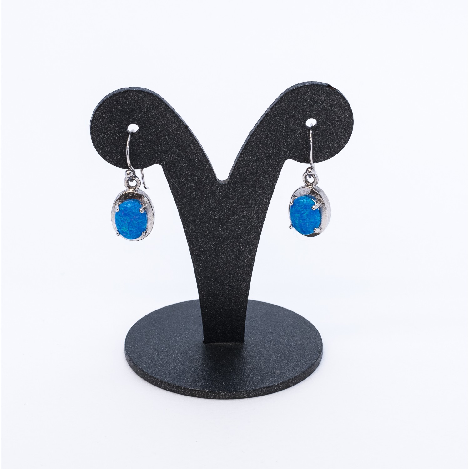 Ex Tax:26.90€925* silver earrings, hypoallergenic, with blue synthetic opal paste and design meander. The blue opal binds the sensation of changing colors ,..