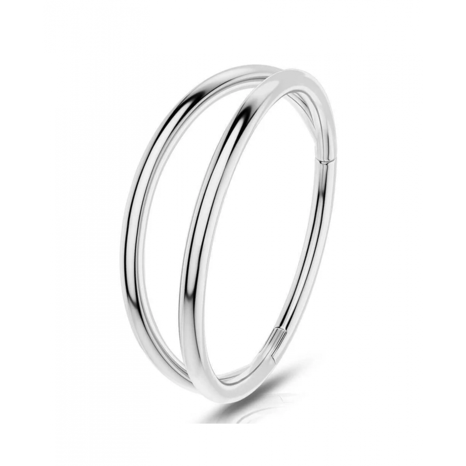 Double hoop earringwith a line of white stonesand a line of marbles.Material: 100% stainless steel.Dimensions: 8mm x 1.2mm(thickness)..