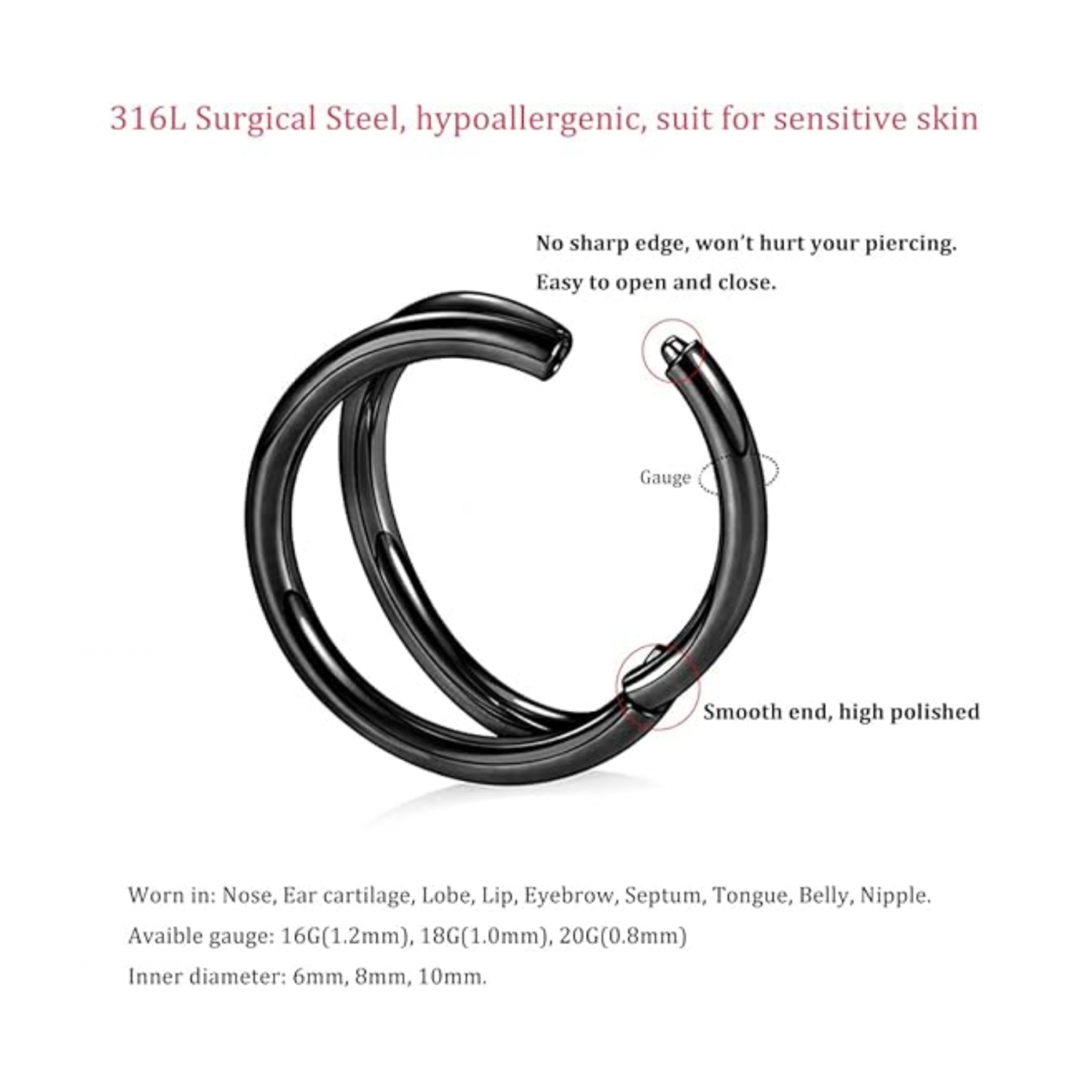 Ex Tax:4.90€Minimal women's nose ring piercing made of 925 silver with a clean hoop design. Lightweight and comfortable, ideal for everyday wear an..