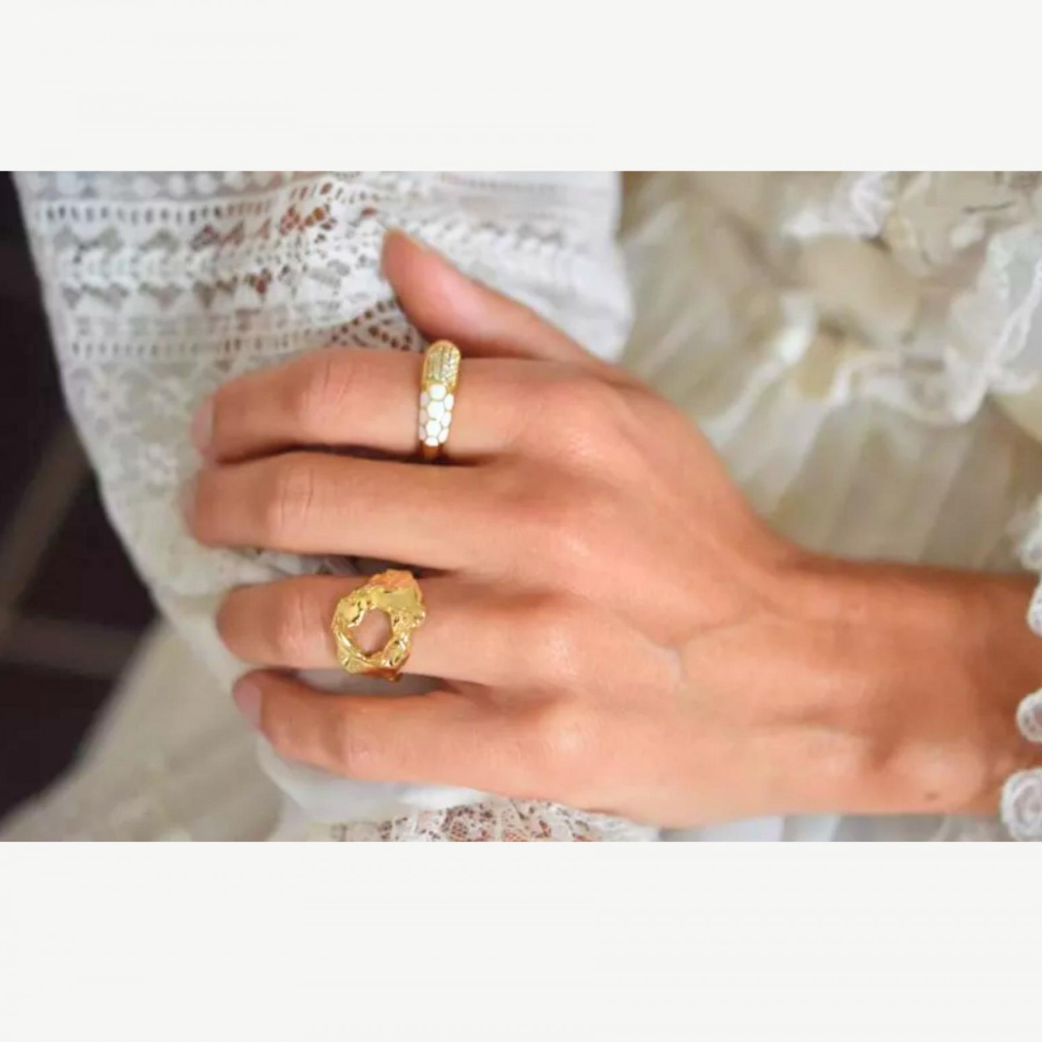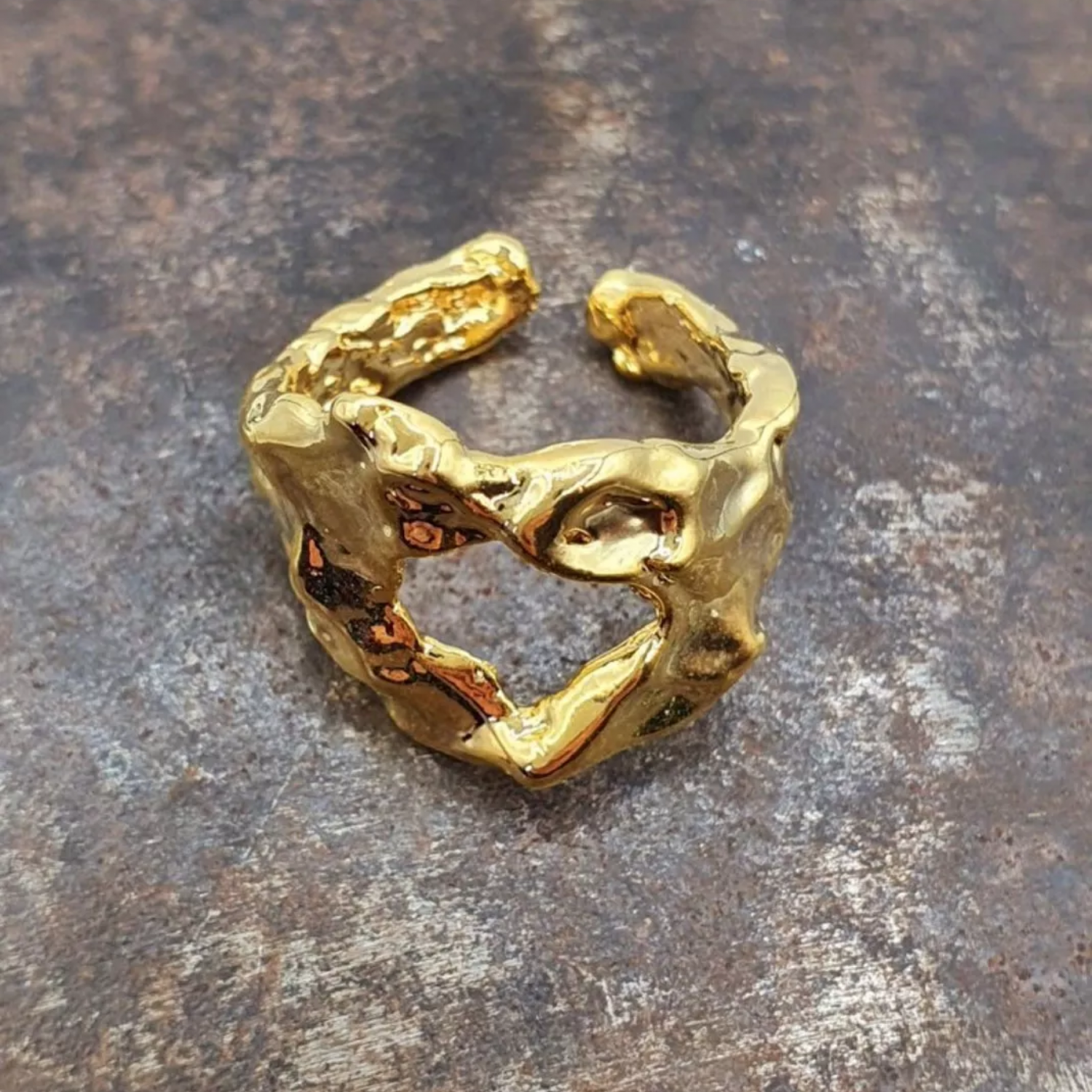 Asymmetric embossed hammered ring
