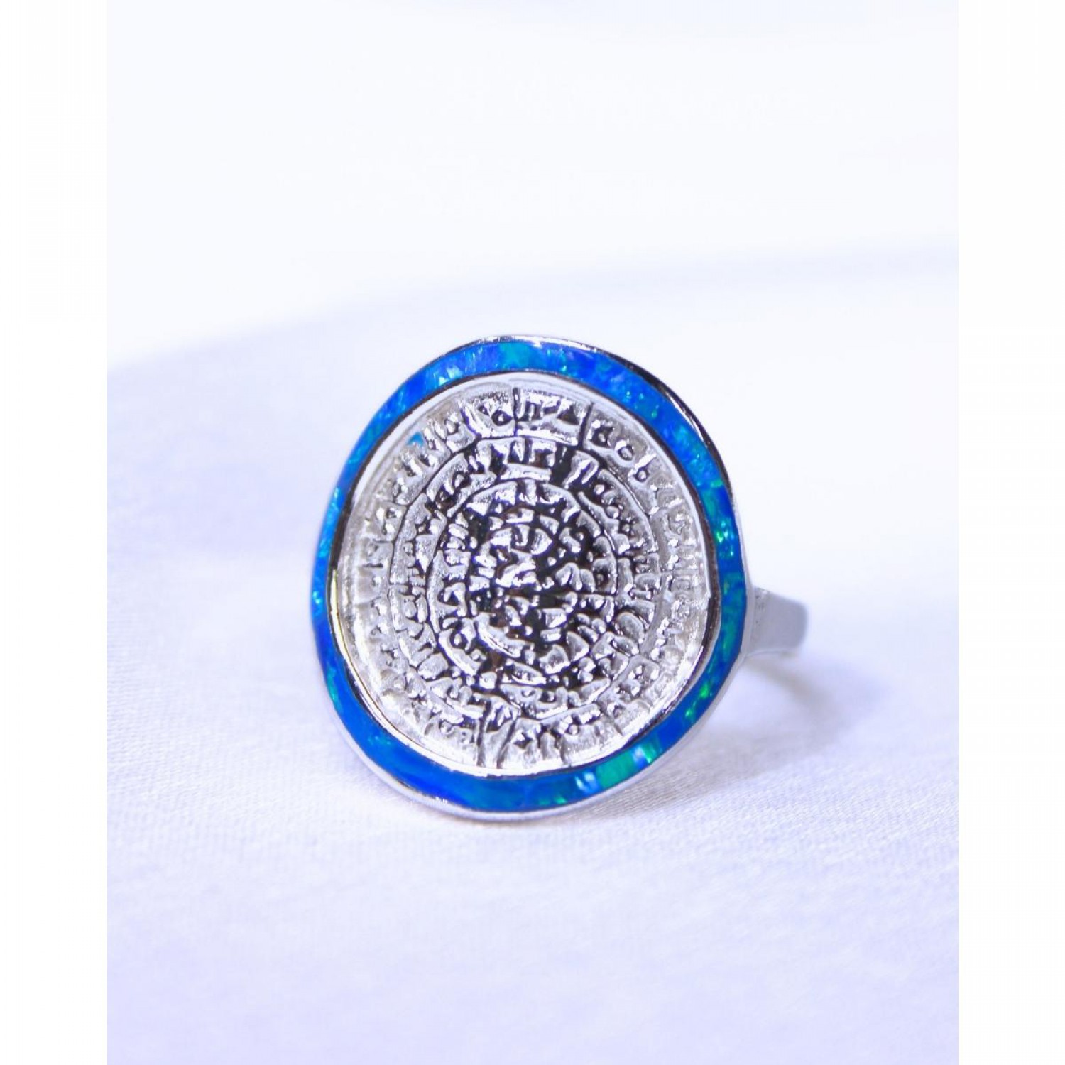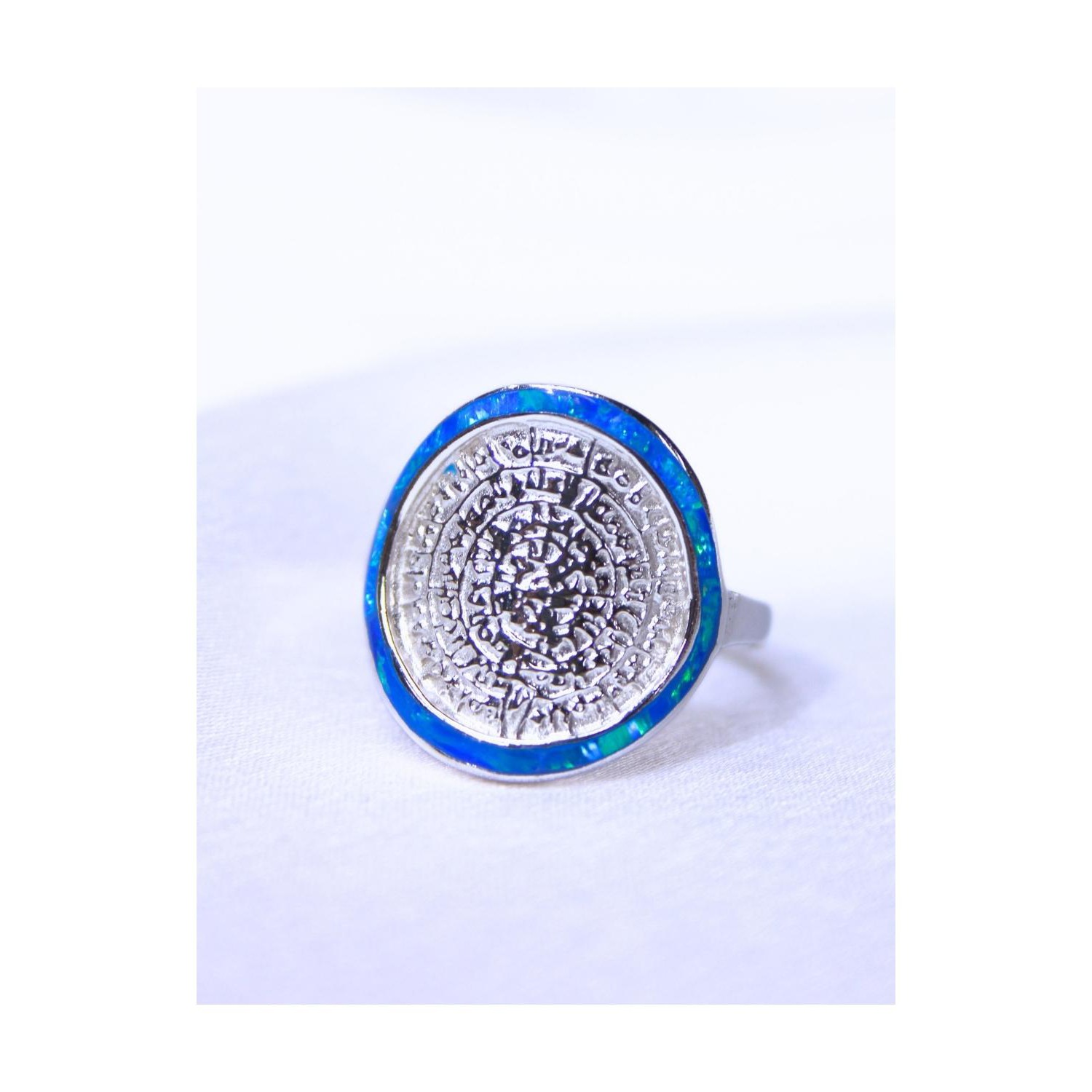 Women's Silver 925 Opal Rhodium Plated Ring with Phaistos Disc Design 527379