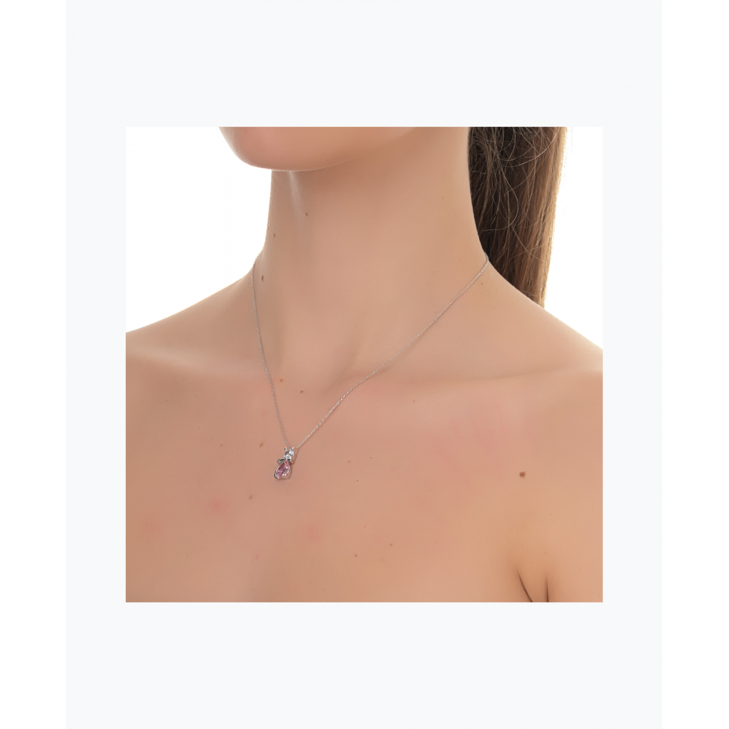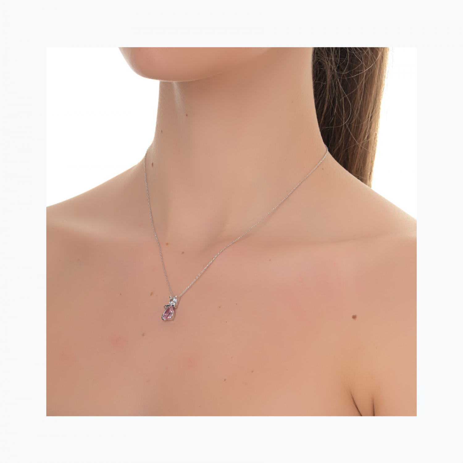 Women's silver pendant necklace with a kitten