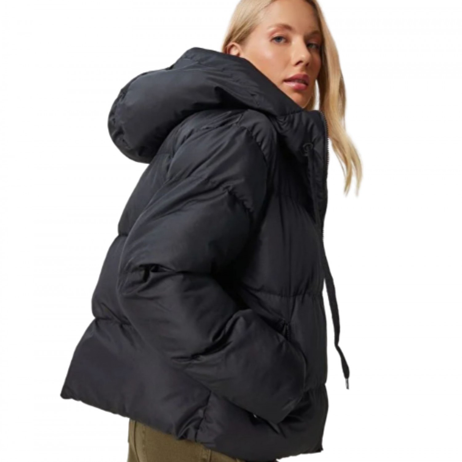 Γυναικείο κοντό μπουφάν με κουκούλα.
